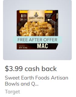 Target carries the 8 oz Sweet Earth Foods Artisan Bowls and the 9 oz Quesadillas for $3.99 each. Buy 1 paying $3.99 out of pocket. You can redeem the $3.99/1 Sweet Earth Foods Artisan Bowls and Quesadillas Ibotta Rebate (exp 10/2/19) making it FREE!