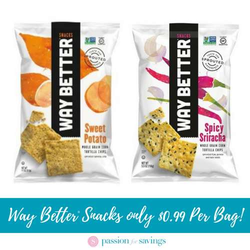 Target has the 5.5 oz Way Better Snacks priced at $3.99 each regular price. Buy 1 bag and stack the 50% off Way Better Snacks Target Cartwheel Offer (exp 6/9/18) with this $1.00/1 Way Better Snacks 5.5 oz Bags printable paying $0.99 out of pocket.