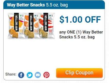 $1.00/1 Way Better Snacks 5.5 oz Bags printable