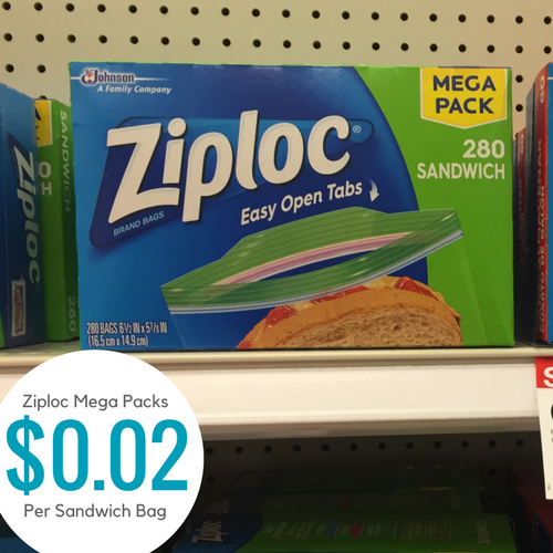 Target is going to have an in ad coupon for $15 off $50 purchases of select household items, and that includes Ziploc Bags! The Ziploc Mega Packs with 280 Sandwich Bags are going to be $7.39 and if you buy 7 boxes and use 3 of the $1/2 Ziploc Bags Coupons with the $15 Household Coupon, you will pay $33.73. That comes out to only $4.82. That is $0.017 per bag on the 280 ct. which is under my stock up price per bag!