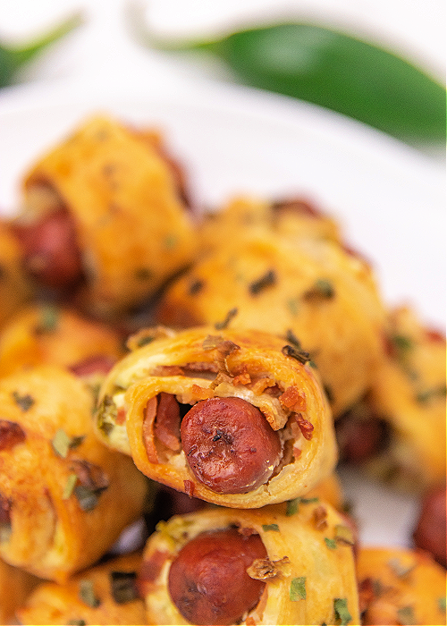 These Jalapeno Popper Pigs in a Blanket are easy to make and delish to eat! With cream cheese, and bacon, they taste like the timeless favorite all wrapped up in a roll!
