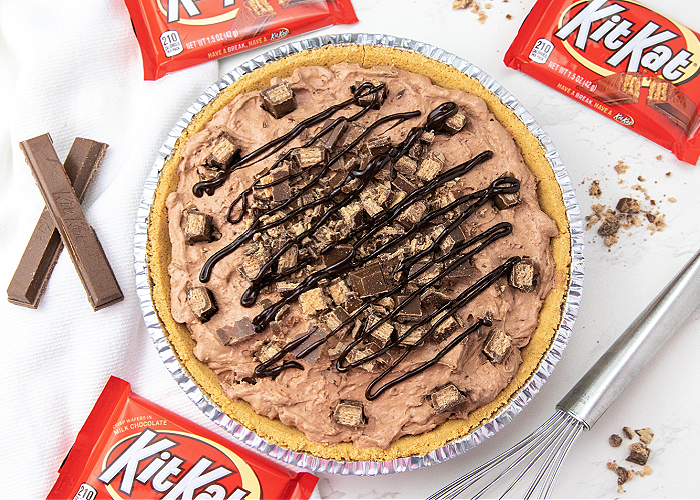 This chocolatey pie is packed full of crunchy KitKat candy bar bites. You'll love how easy this is to whip up for a last-minute dessert!
