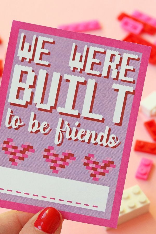 You can use this Lego Valentine for either! Feel free to hand it out to boys and girls. I guarantee any kid will love building and creating with Legos!