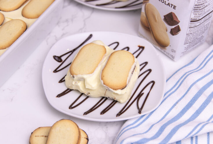 Personally, I find this No Bake Milano Cake tastes even better after it has chilled overnight. The cookies get a bit softer, it’s easier to cut, and the flavors mingle. But, if you’re in a rush to serve it (or if you make it at the last minute before a party or something like that!), it’s just find and everyone will love it just the same.