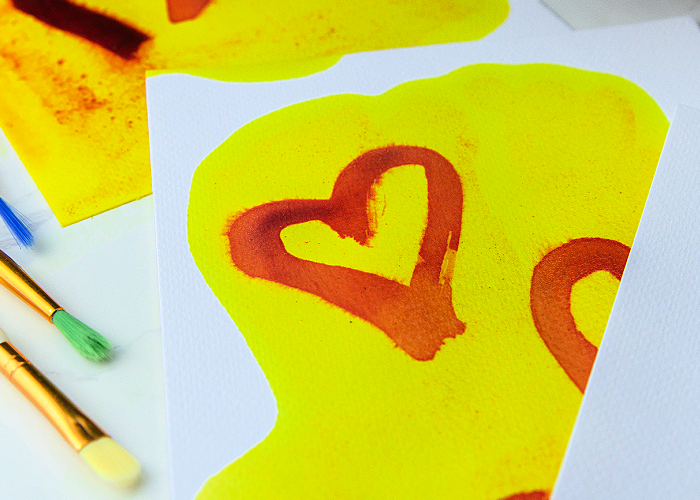 Use a paintbrush to paint whatever you’d like on the paper. You can use any kind of paper, but I really had great luck with watercolor paper. It’s thick and doesn’t get wrinkly when painting on it with the baking soda and water solution.