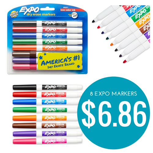 They have this pack of 8 EXPO Dry Erase Fine Tip Markers in Assorted Colors priced down to $6.86 from the regular price of $11.49.