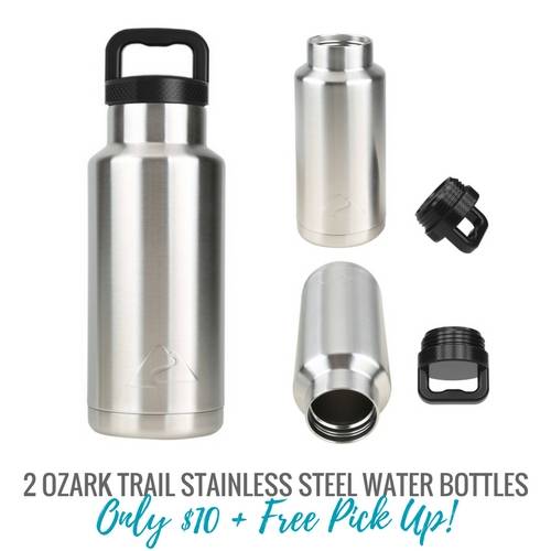 Walmart has the 2 Pack of Ozark Trail 36 oz. Stainless Steel Water Bottles for $10 or $5 each and they are normally around $8 each!