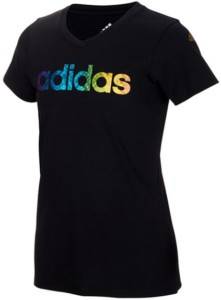 My kiddo loves wearing graphic tees, and this simple yet colorful girls Black Metallic Climalite V-Neck Tee goes perfectly with jeans or leggings. Get this for $10.99.