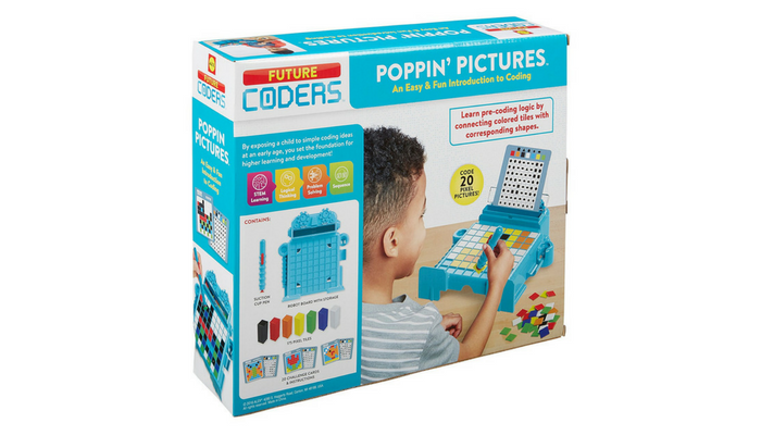 ALEX Toys future coders Poppin’ pictures is a fun activity set that breaks down images into sequences of symbols so kids can learn to create pictures using code. With the suction cup tool, they grab tiles and pop them into position on the grid according to their challenge card. It’s fun and fosters pre-coding skills like sequencing, problem-solving, and logical thinking! includes robot board with storage, suction pen, 175 pixel tiles, 20 challenge cards and instructions. Recommended for children 4 years of age and older.