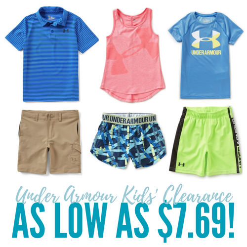 There is a BIG Under Armour Kids’ Clearance Sale at Dillard’s that will get you all stocked up on Kid’s Clothes for Back To School! This is the perfect time to get Under Armour Deals marked off your list and ordered in time for school. There are great clothes kids could actually wear TO school, and other athletic wear for sports!