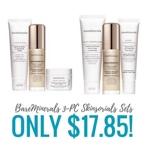 I know lots of you LOVE the BareMinerals Deals and I have another one with your Macy’s Coupons! Macy’s has a couple BareMinerals 3-PC Skinsorials Sets for only $17.85!
