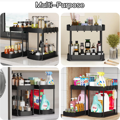 - 【2 Pack Value Set】Sized at 15” x 8” x 12.8” each, these organizers fit perfectly for bathroom organizers and storage, kitchen organizers and storage, under sink organizer and under cabinet storage.