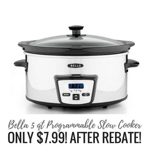 Macy’s has this Bella 5 Qt. Programmable Polished Stainless Steel Slow Cooker on sale for $19.99 – Black Friday Special price! You’ll pay $19.99 out of pocket but then you can redeem this $12 Mail in Rebate making it only $7.99!
