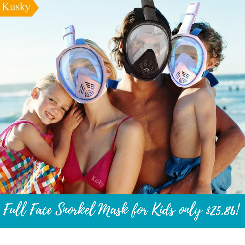 Like to go snorkeling and looking for an easy way to breathe under water without holding the snorkel in your mouth? This Full Face Snorkel Mask for Kids is super cool and only $25.86 shipped when you use coupon code PC67FWR5 at checkout!
