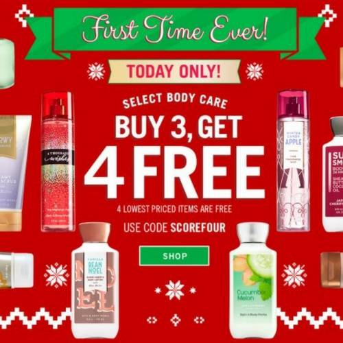 Don’t miss the Bath and Body Works B3G4 FREE Body Care Items! Today Only!