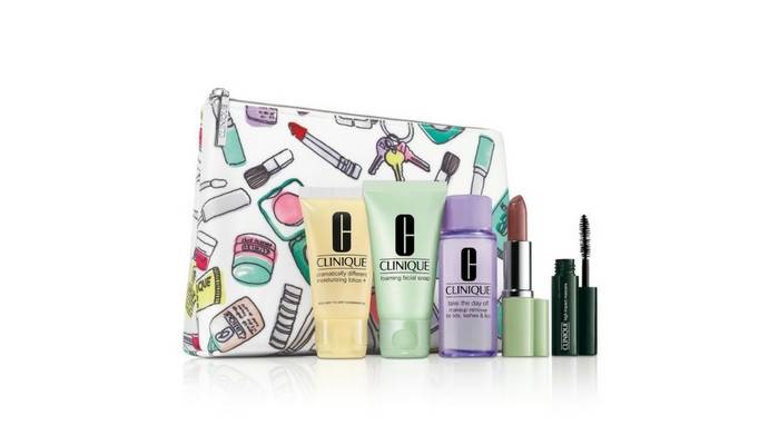 Discover Clinique best sellers in try-me sizes with a signature bag and make your skin happier. Foaming Facial Soap cleans gently yet thoroughly. Clinique’s famous Dramatically Different Moisturizing Lotion+ hydrates all day and leaves skin glowing. Totally tugless Take The Day Off Makeup Remover whisks away even long-wearing makeup. Long Last Lipstick provides the perfect nude for lips and High Impact Mascara, a turn-up-the-volume formula, delivers lusher, plusher lashes.