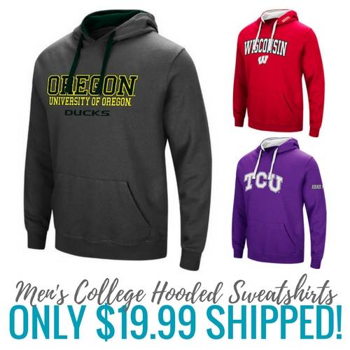 They have Men’s College Hooded Sweatshirts for select teams on sale for only $19.99, and what makes it even better is that shipping is totally FREE! These are really nice hoodies that are normally $40 and this sale is online only!