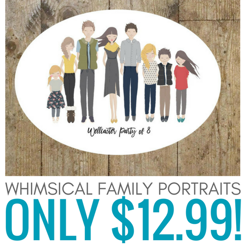 If you’re looking for a new, unique portrait of your family, this is one deal you’re going to want to jump on. Get a super cute Personalized Whimsical Family Portrait for just $12.99 (reg. $45)! This will be sent to you via email or Dropbox, so there is no shipping charge.