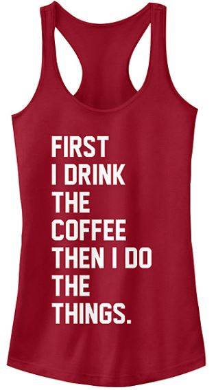 This ‘First I Drink The Coffee’ Racerback Tank is perfect for all of you who need coffee to function in the mornings.