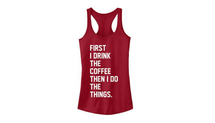 This ‘First I Drink The Coffee’ Racerback Tank is perfect for all of you who need coffee to function in the mornings.