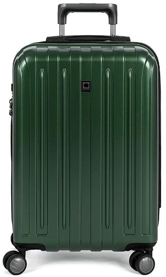 This DELSEY Paris Helium Titanium Hardside Luggage with Spinner Wheels is another great carry-on that has two full packing compartments with a zippered divider and pockets for small items. It also has an integrated TSA-accepted combination lock. Get this for $79.99.