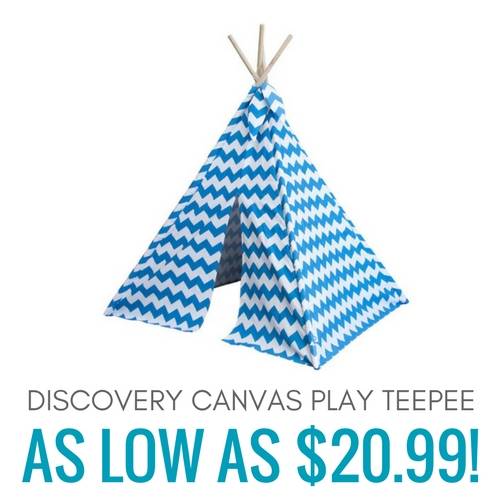 Create a fun and creative escape for hours of imaginative play with this Discovery Canvas Play Teepee for as low as $20.99 (reg $99.99) with your Kohl’s Coupons!