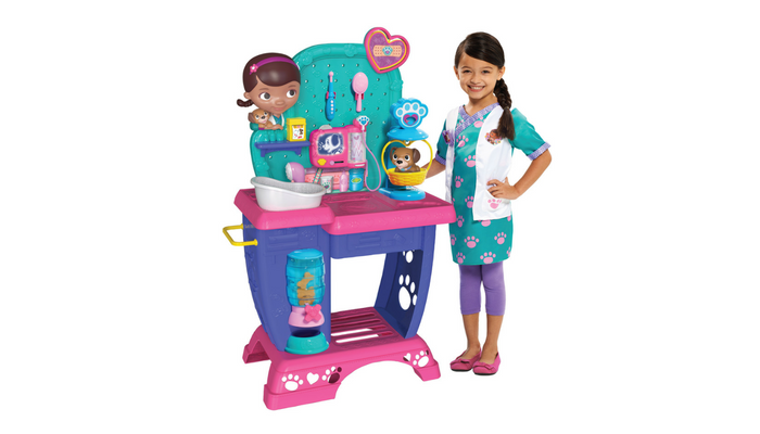 Kids can pretend to take care of their beloved pet friends and animals with the Disney Junior Doc McStuffins Pet Vet Checkup Center, just like Doc McStuffins from the top-rated Disney Junior series! Future veterinarians will love exploring all the Checkup Centers features and accessories, including Docs pet friend Findo who is ready for his checkup! Kids can slide in multiple play x-rays to activate lights and sounds, use the scale to weigh animals with a removable basket, and give them a bath with a pretend water sprayer. The Pet Vet Checkup Center is also equipped with an electronic stethoscope, kid-powered EKG, otoscope, play thermometer, brush and bandage sticker dispenser to fix boo boos. The patients can get a special treat after their checkup from the pet treat dispenser! For Ages 3+.
