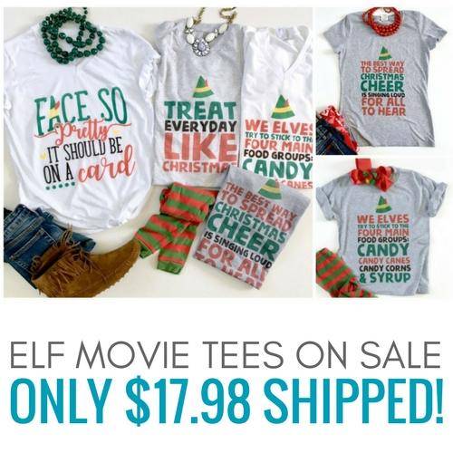 The Elf Holiday Tees have some of the popular lines from the movie and they are only $13.99. The shipping is $3.99, so you pay a total of $17.98 shipped!