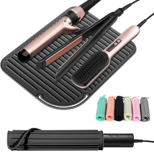 - Oversize Heat Resistant Mat : This hot hair tools mat has been upgraded to a size of 11.8 inches, a larger size than traditional silicone hot pads and holds multiple hair styling tools at the same time.