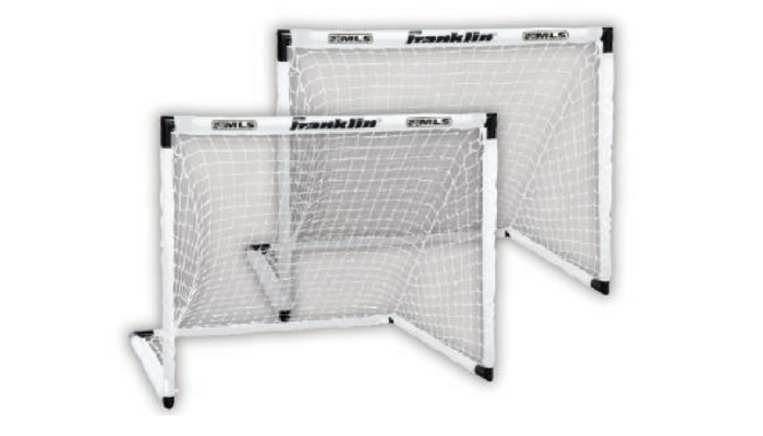 Franklin Sports MLS Youth 2 Goal Set features two 54″ goals and 8 ground stakes. Perfect for backyard, park or field play. Goal size: 54″ X 36″ X 20″.