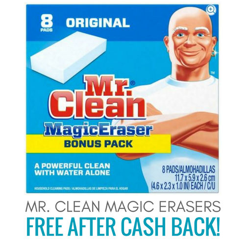 Running low on Mr. Clean Magic Erasers or have you been wanting to try them for the first time? How does getting them for FREE sound?? Here’s how you can score an 8-count pack of FREE Mr. Clean Magic Erasers after cash back: