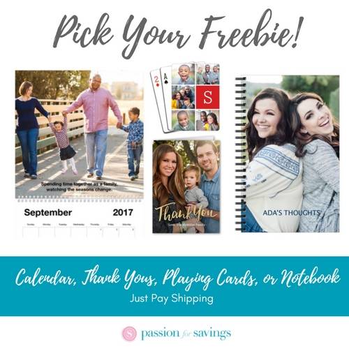 I LOVE this one day only freebie you can get using Shutterfly Coupon Codes! They are offering your pick of FREE Shutterfly Notebook, Playing Cards, Calendar, or Thank You Cards and you just have to pay for shipping!!!