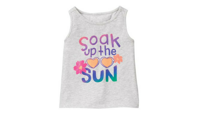 This ‘Soak Up the Sun’ Swing Tank is super cute and pefect for your little girl to rock this summer. Get this for $4.49 (reg. $17).