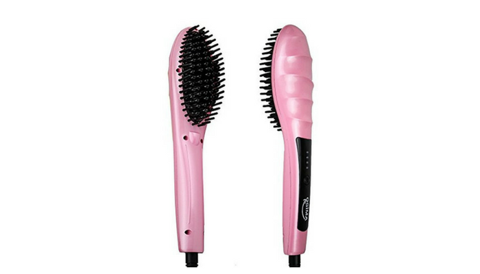 The code RI6PBJFZ will drop the price of the Ceramic Hair Straightener Brush from $29.99 to $20.99, and it has 4 out of 5 stars!