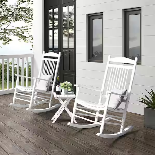 This White 3-Piece Wood Patio Rocking Chair Set is what slow mornings and peaceful evenings are made of! Grab the full set for only $169.99 (reg $248).