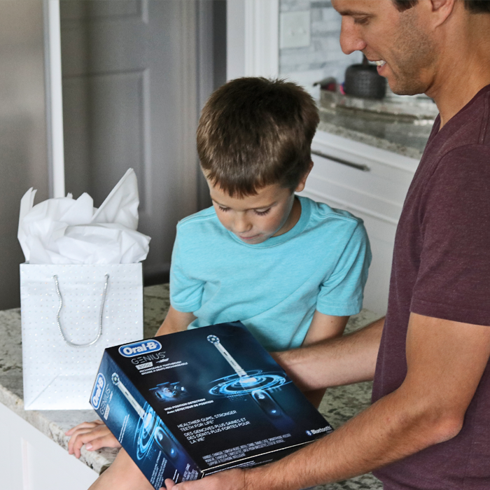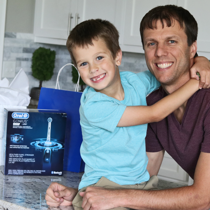 This would make a great Father’s Day Gift Idea for the Dad who loves Technology! The Oral-B GENIUS 8000 syncs with your Smartphone and allows you to share your brushing data with your dentist or hygienist.
