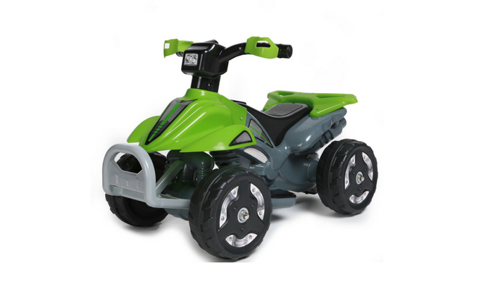 They have the Kids Ride On 6V Battery Powered ATV Quad priced down to only $39.87 and it has Free Shipping! Powered by a 6V rechargeable battery, this kids ride on features forward and reverse gear, contoured seat for comfort, plus an easy foot-press-button drive system. The maximum weight capacity is 55 lbs and it requires simply assembly by adult before use.