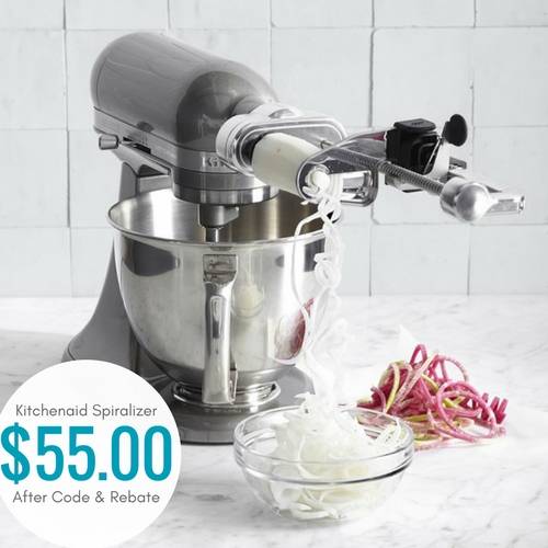 I have an awesome KitchenAid deal for you! Macy’s a rebate and Macy’s Coupons you can use on the AWESOME KitchenAid Spiralizer Attachment with Peel, Core & Slice!