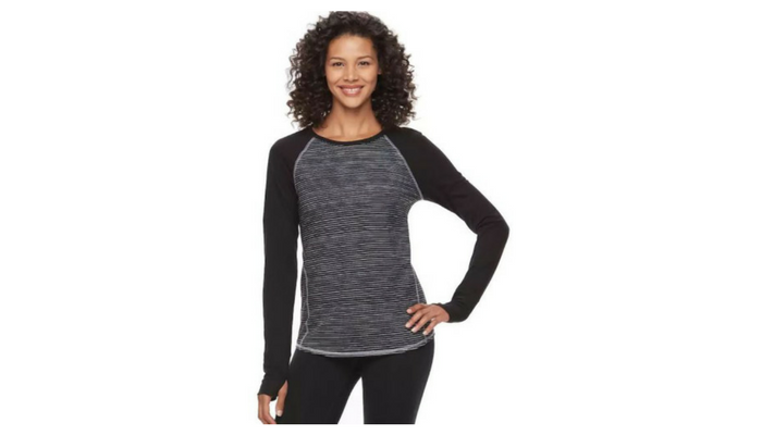 This Women’s Tek Gear Raglan Long Sleeve Tee is perfect for running, walking or working out at the gym. This is priced at $8.49 after coupon code (reg. $18).