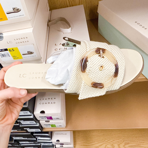 How cute is the buckle on these LC Lauren Conrad Henna Circle Buckle Slide Sandals?! Just $25.49 (reg $40). Also available in Black!