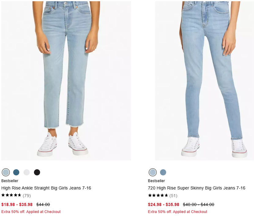 Kid’s Levi’s Jeans from only $9.49 (reg $26) when you take the extra 50% off!