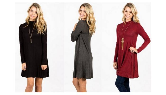 Check out this super cute Long Sleeve Mock Neck Tunic Dress only $7 Shipped from Groopdealz! Throw on a pair of your favorite flats or low rise sneakers for a more laid back, causal outfit.