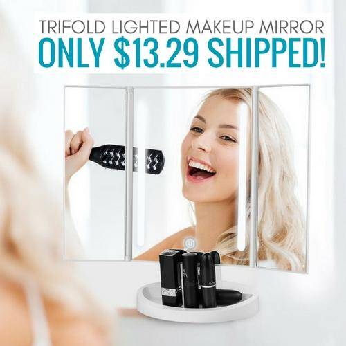 Need a mirror to do your makeup? You can also get this Jerrybox Trifold LED Lighted Makeup Mirror for only $13.29!