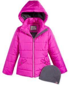 Girls will love the bright pink color on this Isabel Hooded Puffer Coat. This coat also comes with a hat!