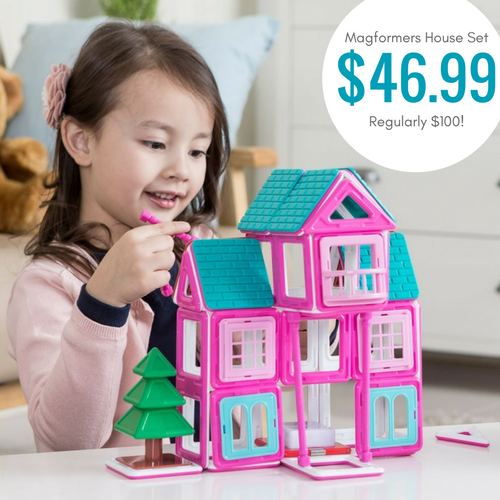 These Magformers are so cool! My kids all love them, and if you want to get some for Christmas gifts, Amazon has the Magformers Sweet House Set for a crazy low price!