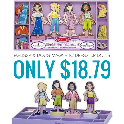 My daughter LOVED these Melissa & Doug dress-up dolls when she was younger, and I loved them because the magnetic feature makes them easier to dress than the old paper dress-up dolls that were around when I was a kid. Right now, you can get this Melissa & Doug Deluxe Magnetic Dress-Up Play Set for just $18.79 (reg. $30)! Shipping is FREE with Amazon Prime.