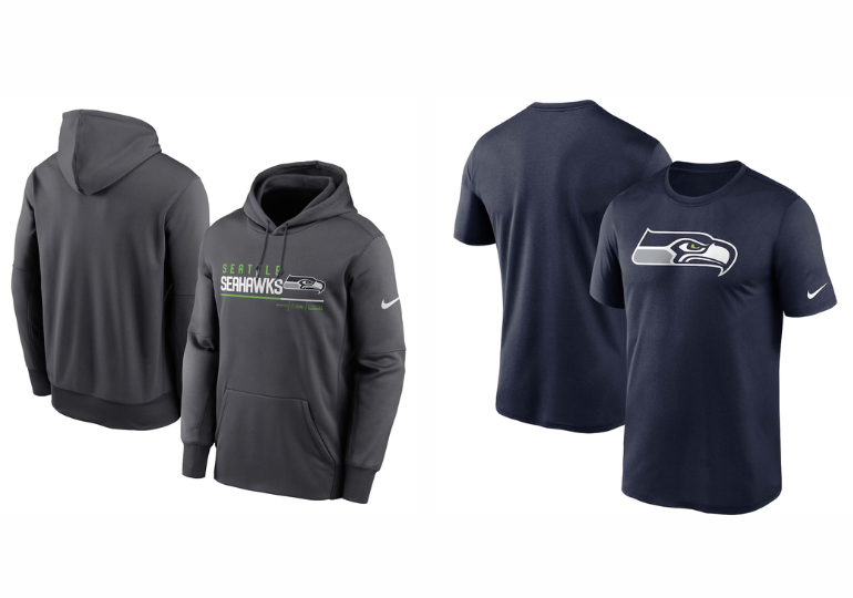 Seahawk fans can get this Nike Prime hoodie on sale for just $39.99 (reg $79) or the Nike Logo Essential Tee for $21.99 (reg $39.99).