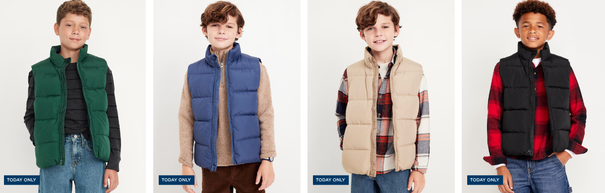 Today, 11/11/24 at Old Navy, we spotted some really great puffer vests on sale with prices that will blow your mind, not your budget! These are a must have for the cooler months ahead. Run to grab them in all of your favorite colors for only $14 for kids and $15 for adults! There are even Toddler sizes for $11!