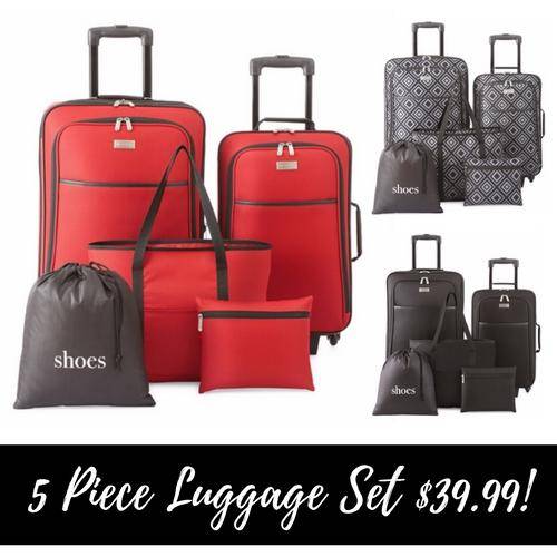 JCPenney has this Protocol Garrison 5 Piece Luggage Set down to only $39.99! This is the BLACK FRIDAY PRICE Live Now so make sure you grab this one before it sells out, this one is normally a $40 Value!!!