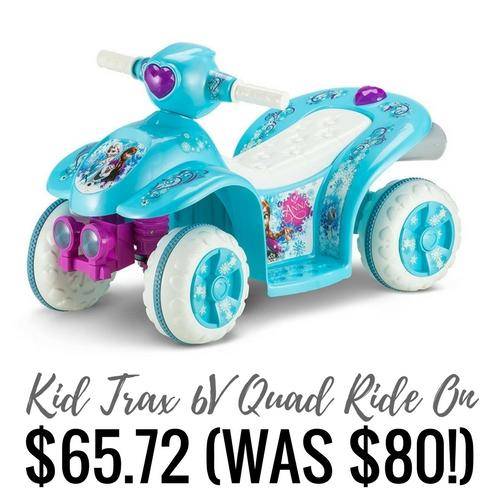 This Disney Kid Trax Frozen 6 Volt Quad Ride On is marked down on Amazon right now, Normally priced at $80, this is on sale for $65.72 right now! This is BETTER than The Target Black Friday Price on the same item from Kid Trax!